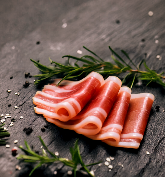 Aus Schweinebäckchen, mit Salz, Paprika und Pfeffer eingerieben, langsam gereift. Ideal für Pasta alla Carbonara oder zum Genießen in hauchdünnen Scheiben.